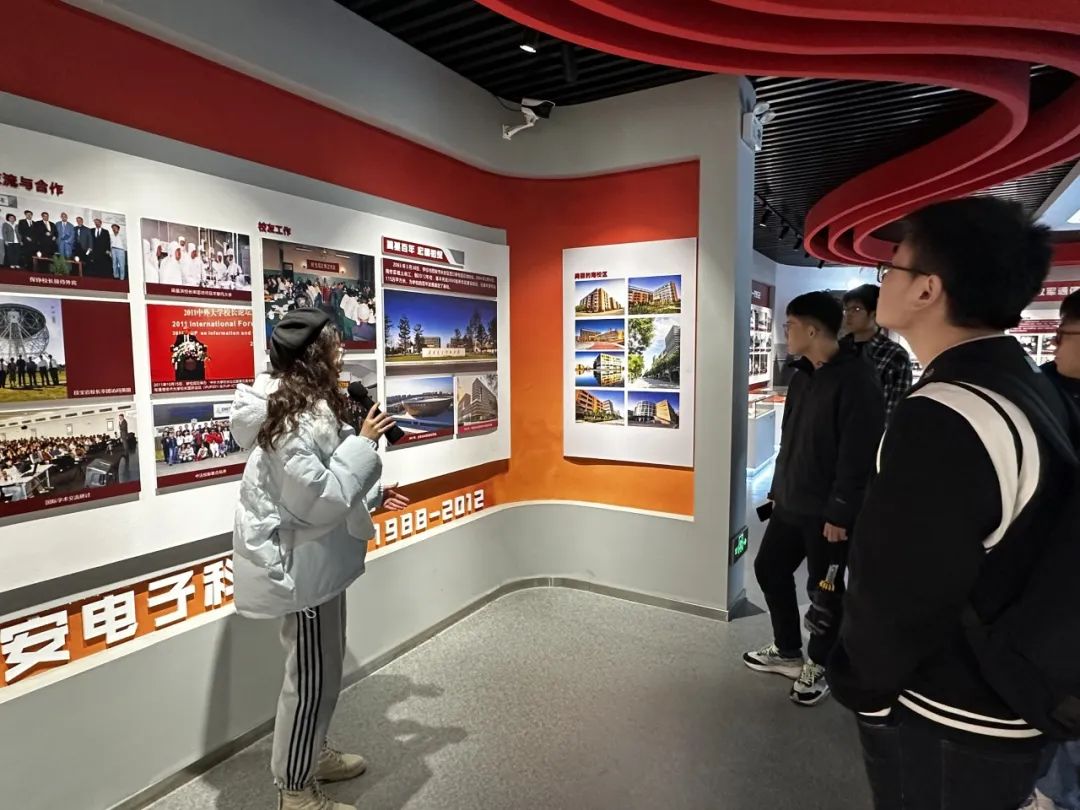 新冬碎瓊,在講解員聲情并茂的講解下,同學們有序進入校史館參觀了“序廳、俯垂明訓、校史鉤沉、今日華章”四大篇章,全面了解學校發展歷史、辦學成就、校友代表和動人故事。一張張黑白色的舊照片,一段段可歌可泣的感人事跡,無不體現著西電人永遠聽黨話、跟黨走的堅定決心,展示了西電人從半部電臺起家的篳路藍縷,也見證了如今人才培養的西電現象。同為西電人,每位同學心中升騰起自豪與驕傲,更深刻意識到新時代賦予西電人的責任使命。