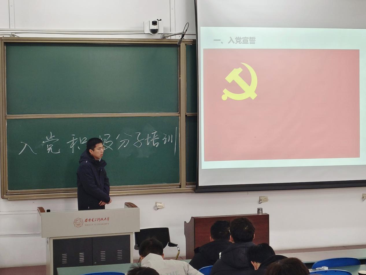 為切實做好大學生入黨積極分子培養工作,引導學生堅定理想信念,加強理論學習,12月17日下午,電子工程學院在教學B樓443教室舉辦大學生中級黨校線下理論課專題培訓。學院本科2021級黨支部書記白揚華、本科2022級黨支部書記張偉主講課程,155名本科生入黨積極分子參加培訓。