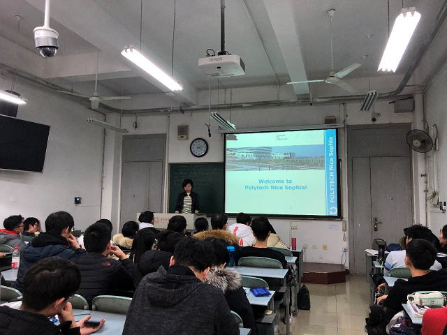 (通訊員 吳媛媛 殷樂雨)12月19日下午,在南校區C樓423教室,法國綜合理工聯盟歐盟獎學金負責人尹娜老師為中法合作辦學項目2018級新生做了一場精彩生動的宣講會,旨在讓18級新生對法國的工程師教育有更進一步的了解,為學生們日后的學習增強信心,做好規劃。