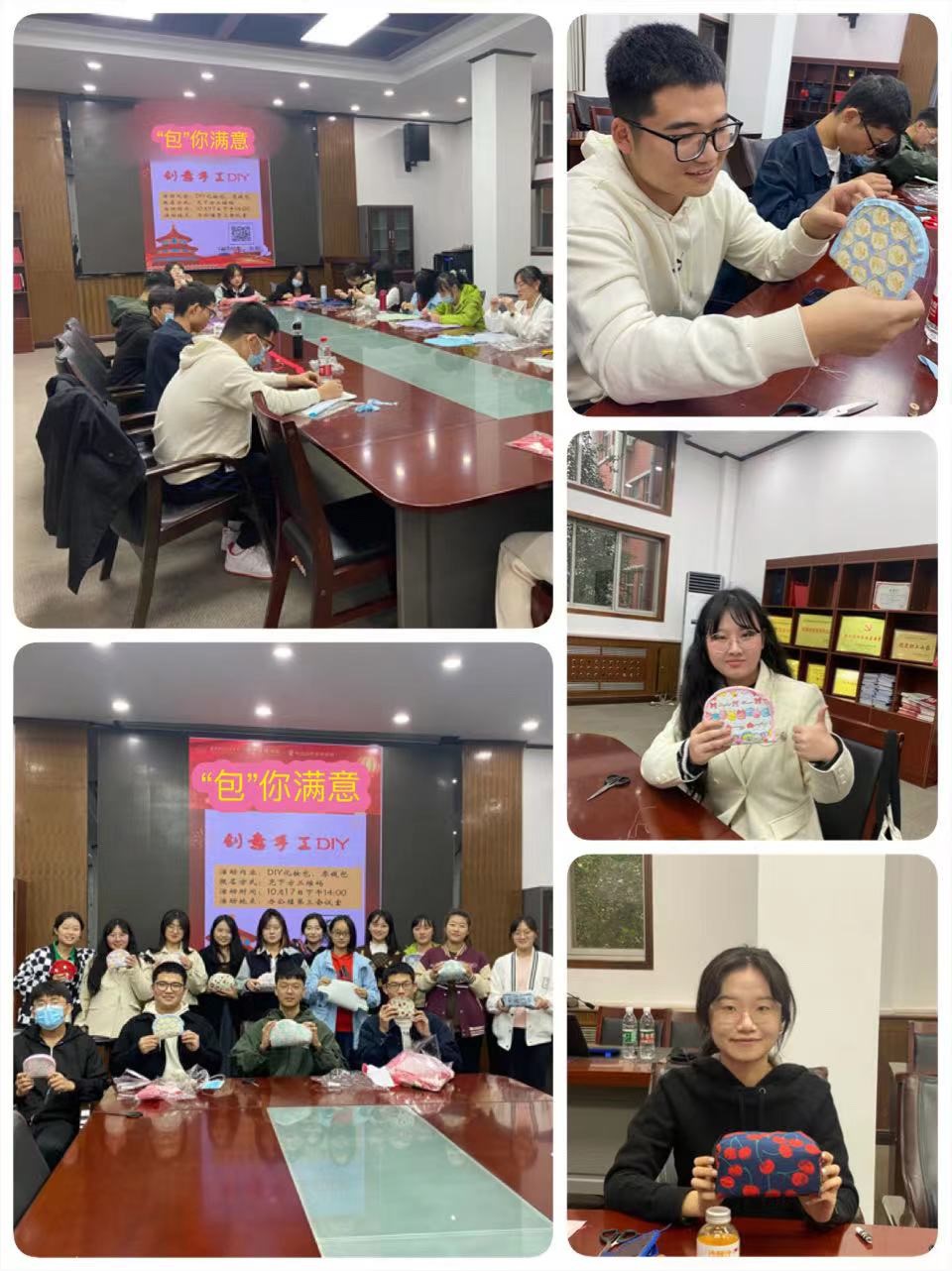 北校區大一新生組織了“‘包’你滿意”創意手工活動,活動現場氛圍輕松愉快,輔導員老師也融入了可愛的同學們,幫助大家安裝拉鏈;同學們參考安裝視頻教程,從穿針引線、裁剪樣圖、認真縫制一步一步精心完成著自己的作品,相互幫助,相互交流,充分體現了中法學子們的細心與耐心,加強了新生之間的交流互動,豐富了學生的課余生活,緩解了疫情管控期間學生們的焦慮情緒。