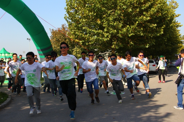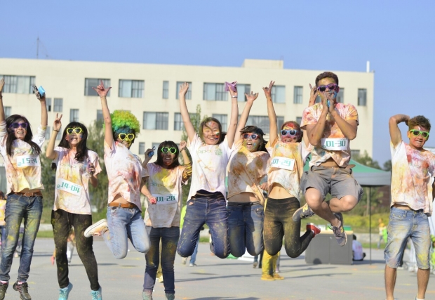 起跑儀式開始前,一段活力四射的啦啦操表演為選手們加油助威。本次彩虹跑活動共設3個撒粉區和2個彩繪區,跑道起點在南校區南操場,途徑丁香公寓、家屬院、竹園公寓及海棠公寓,全程5公里。近千名選手分成22個小組參加比賽。選手跑步經過撒粉區時,工作人員將紅、黃、綠、藍、紫等各色顏料噴灑在選手身上;經過彩繪區時工作人員用彩筆在運動員臉上涂鴉各式圖案。