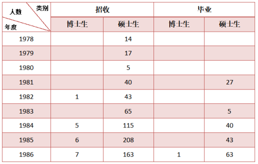 ▲1978-1986年研究生招生、畢業人數統計(來源:《西北電訊工程學院校史(1947—1987)》)