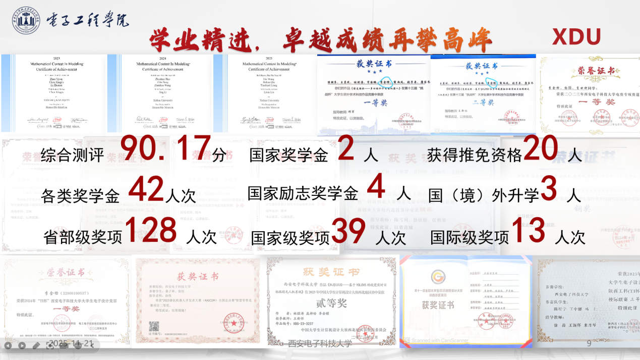 在濃厚的學術氛圍下,班級學業成績均分達90.17分,彰顯了扎實的專業基礎。班級成員累計榮獲各級獎項190余項。班級推免率高達50%,其中絕大多數學生選擇繼續扎根西電,部分學生赴北京大學、浙江大學、上海交通大學等高校繼續深造。