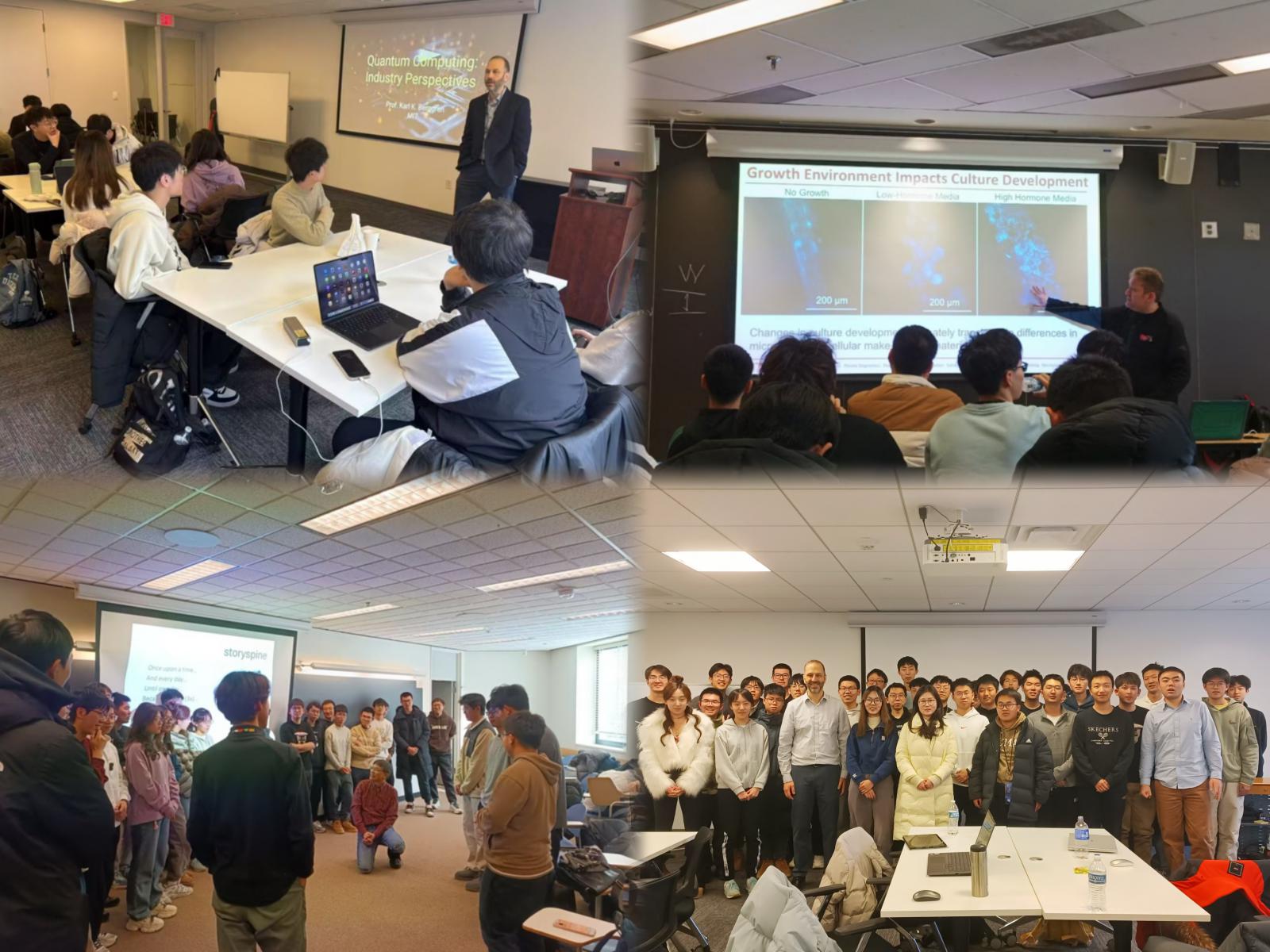 作為全球科技創新的頂尖學府,麻省理工學院在人工智能、電子信息等領域擁有世界一流的科研平臺與教學資源。項目期間,MIT微電子系統實驗室主任Karl Berggren教授以“量子計算產業前景與超導電子學原理”為主題,系統闡釋了對偶性原理與超導電路設計,學生通過實驗模擬深入掌握超導技術的核心應用。電子研究實驗室首席科學家Luis Fernando教授則聚焦“高電場現象與增材制造技術”,結合微流控實驗與四極質譜分析,引導學生探索前沿交叉學科的研究方法。此外,MIT電氣工程與計算機科學高級講師TonyEng通過互動式教學,全面提升學生的學術英語表達與科研演講能力。在結業匯報中,學生圍繞“人工智能”與“射頻工程”兩大主題進行展示,MIT專家現場點評,進一步強化了學生的邏輯思維與實踐能力。