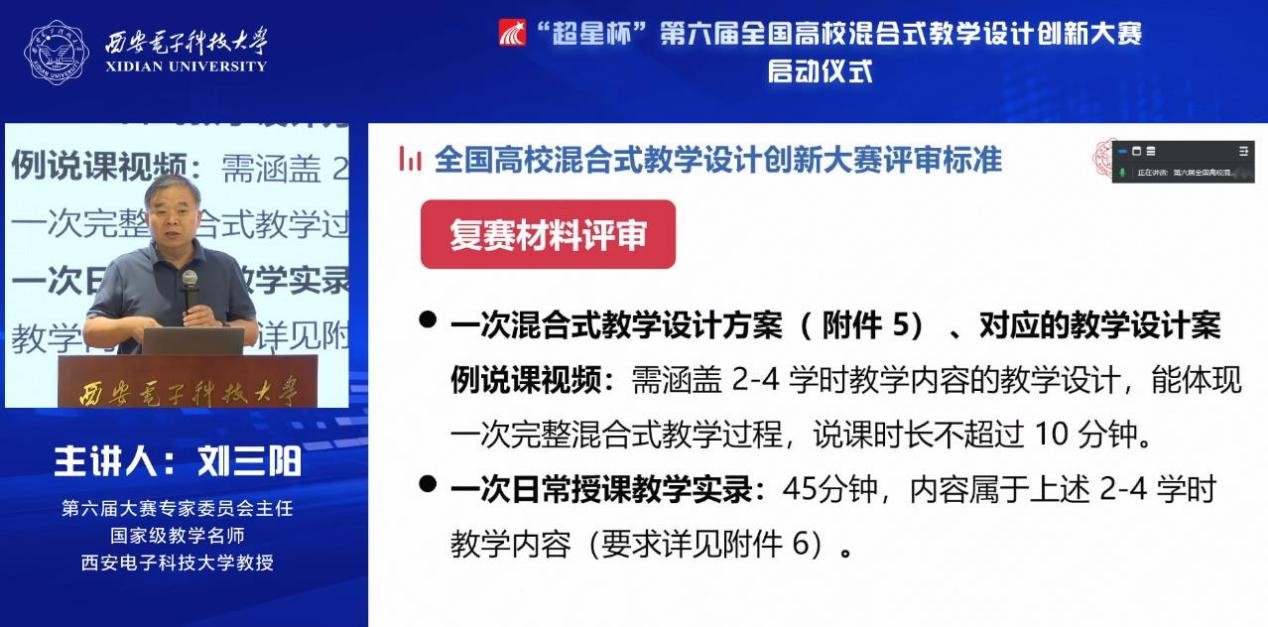 大賽專家委員會主任、國家級教學名師、西安電子科技大學劉三陽教授代表專家委員會,對參賽提交材料與評審標準進行了詳細解讀與分析,并重點說明了本屆大賽在參賽材料與評審辦法方面的修訂條文和修訂理由。