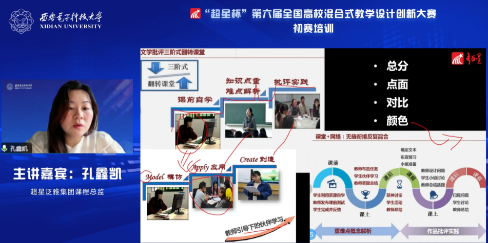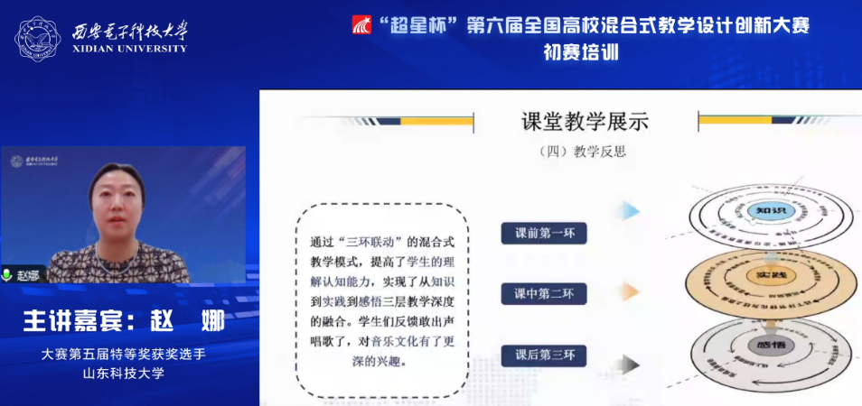 (通訊員 李雨煙)近日,“超星杯”第六屆全國高校混合式教學設計創新大賽初賽培訓在線舉行。本次培訓由西安電子科技大學、超星泛雅集團共同主辦,由中國高等教育培訓中心協辦,由西安電子科技大學本科生院教學發展中心、電子工程學院承辦。培訓分3場專題報告會,邀請知名專家與往屆獲獎選手進行備賽要點與經驗分享,通過西電教發公眾號、超星平臺、中國高等教育培訓中心公眾號等多個渠道進行了直播,累計2萬余人在線觀看。