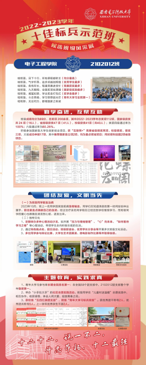 此次評選活動,在學院領導的高度重視和全體學生的共同努力下,取得了優異成績。電子工程學院高度重視本科生班級建設,以班風強化學風,激發學生學習興趣,營造積極向上班級風氣。學院將持續提升人才自主培養質量,深化本科生班集體建設,以“十佳標兵示范班”、“先進班集體”為樣板,續寫學在西電新篇章。