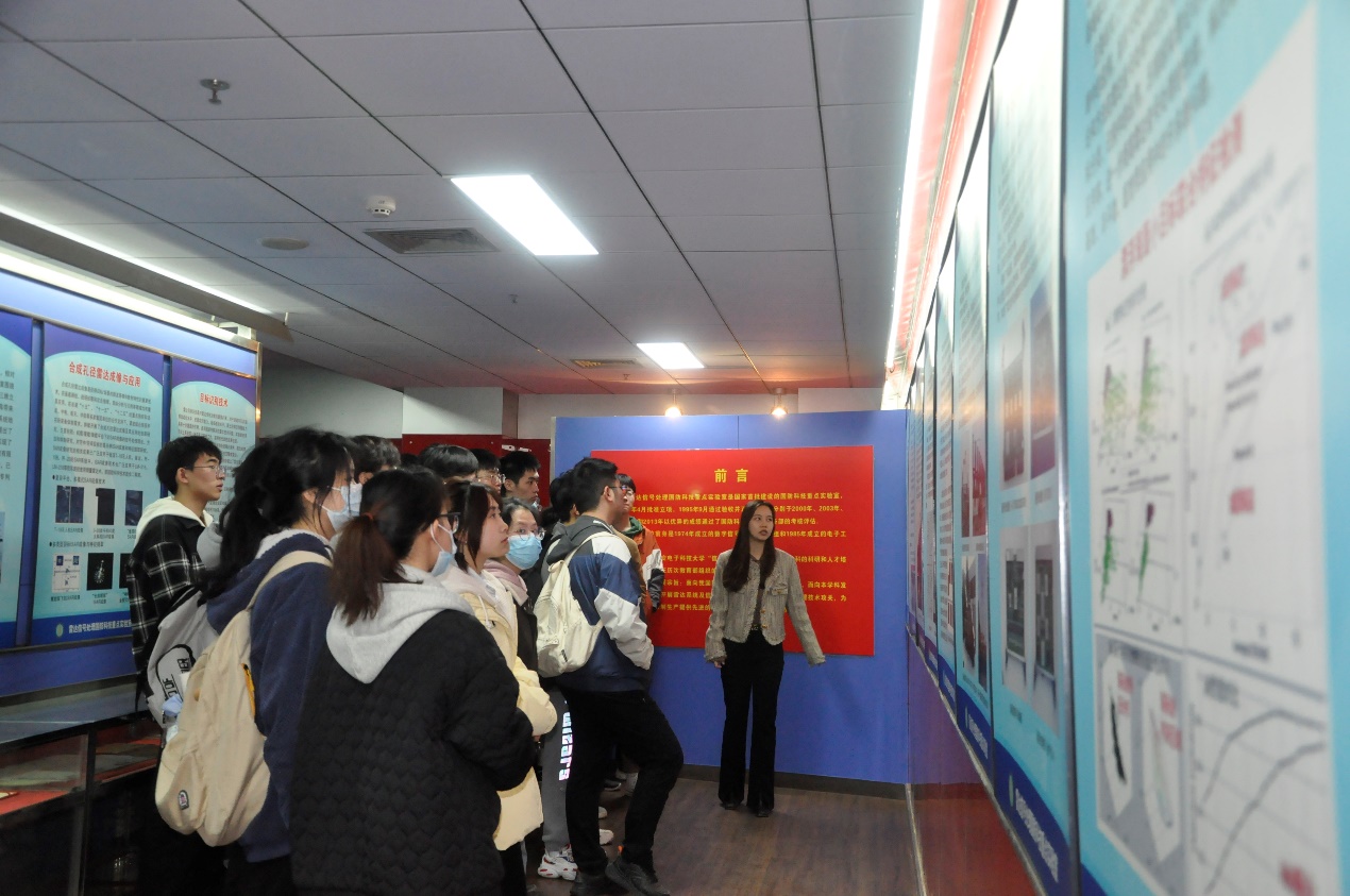 首先,班主任蘭嵐帶領2022級“畢德顯班”全體同學參觀了實驗室成果展廳,介紹了實驗室在科研攻關、人才培養、社會服務等領域的工作以及實驗室在信息科學與技術領域的卓越成就,激發了同學們對雷達如何工作、科研如何開展、成果如何應用等問題的濃厚興趣并積極提問,使得在場學生對實驗室的定位與工作形成了初步的認識。