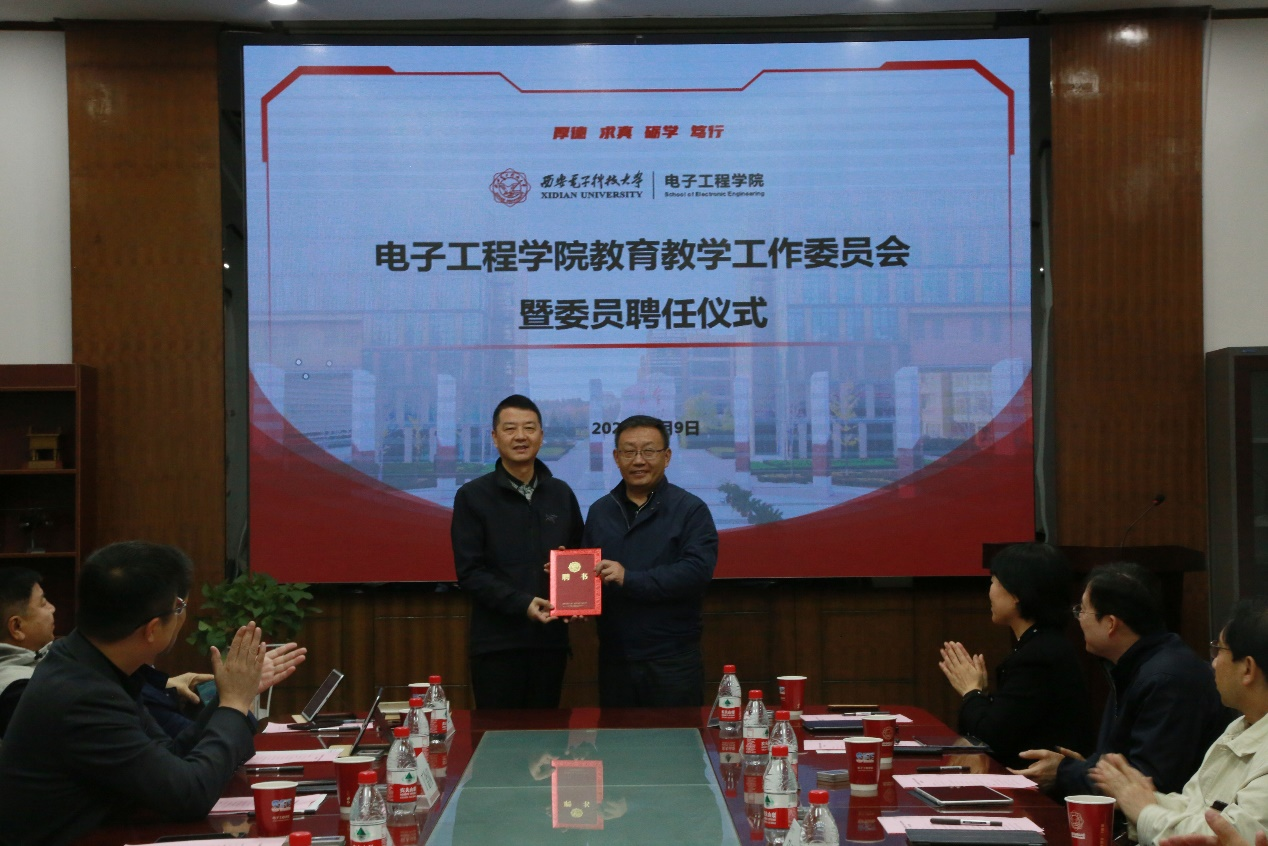 丁金閃宣讀了教育教學工作委員會委員聘任文件,學院黨委書記楊光暐為教工委委員頒發聘書。丁金閃表示,為服務創新性國家建設對高層次人才的需求,賡續西電優勢專業的人才培養現象,全面加強本科和研究生教育教學工作,學院在2022年成立了教育教學工作委員會,負責本科和研究生教學質量、課程體系建設、學位論文督導等工作,為教育教學工作提供咨詢指導和質量評估支撐。希望資深教授和教學名師委員們能切實履行職責,協助推動學院人才培養質量穩步提升。學院將打好“組合拳”,做好頂層規劃,從崗位聘任、教改立項和碩士生招生指標等政策機制方面大力支持本研核心課程建設,做實虛擬教研室建設。