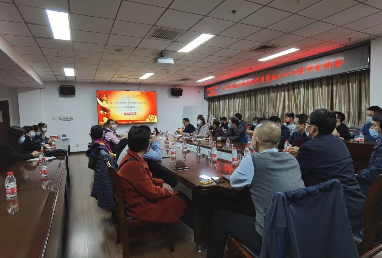 (通訊員牛婷鈺)11月23日下午,電子所黨支部在北校區科技實驗樓1702會議室召開了學習貫徹黨的二十大精神宣講報告會,學校紀委副書記、監察處處長靳珠,電子工程學院黨委副書記、紀委書記劉建鋒,電子所黨支部全體黨員以及青年教師代表參加了會議。