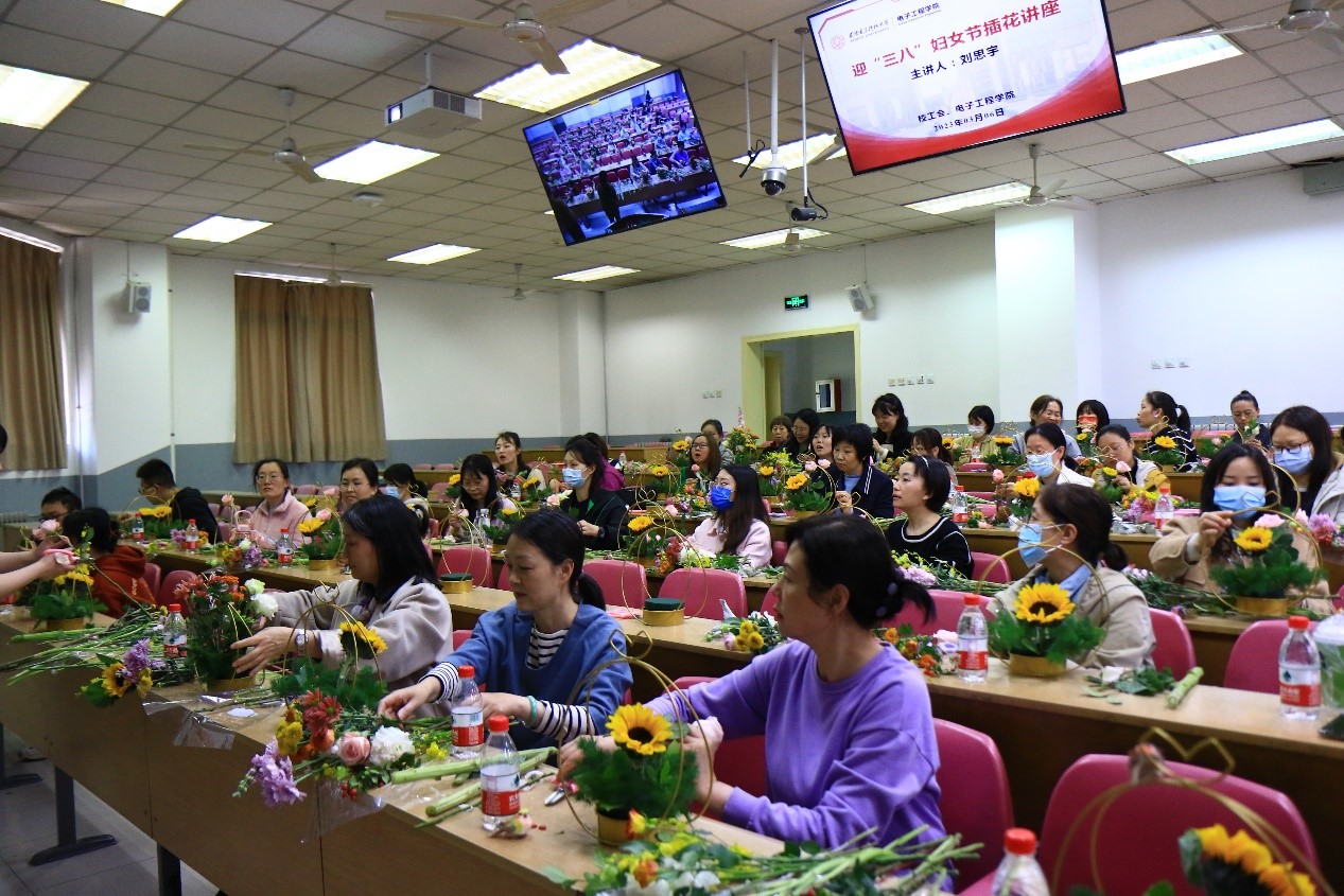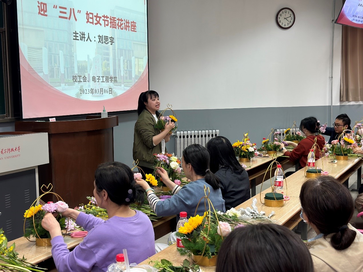 (通訊員張玲)為迎接第113個國際勞動婦女節,豐富女職工精神文化生活,活躍學院文化氛圍,電子工程學院和校工會聯合面向全校女教職工于3月6日在北校區階梯教室201舉辦“迎三八”插花主題講座,來自校機關和9個學院分會的女教職工參與此次活動。