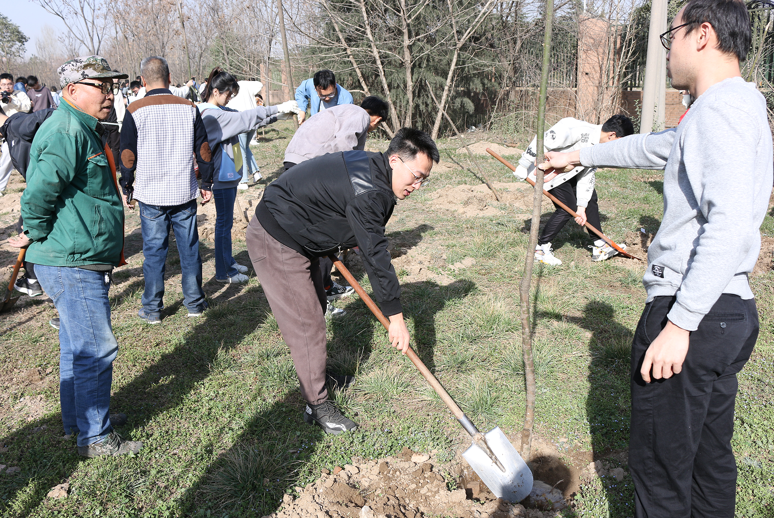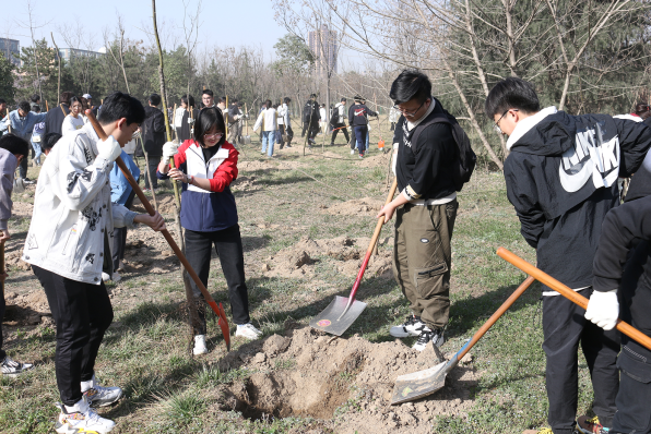 遠望谷體育館東側,在后勤保障部園藝老師的統籌安排下,同學們三五人一組,有序分工,熱情飽滿。大家一起揮動鐵鍬、培植厚土、扶正新苗,讓一棵棵樹苗在灌溉之下萌發新生。同學們紛紛表示這次活動十分有意義,增強了自我植綠、愛綠、護綠的意識,在身體得到鍛煉的同時,提高了自身的專業素養和動手能力。