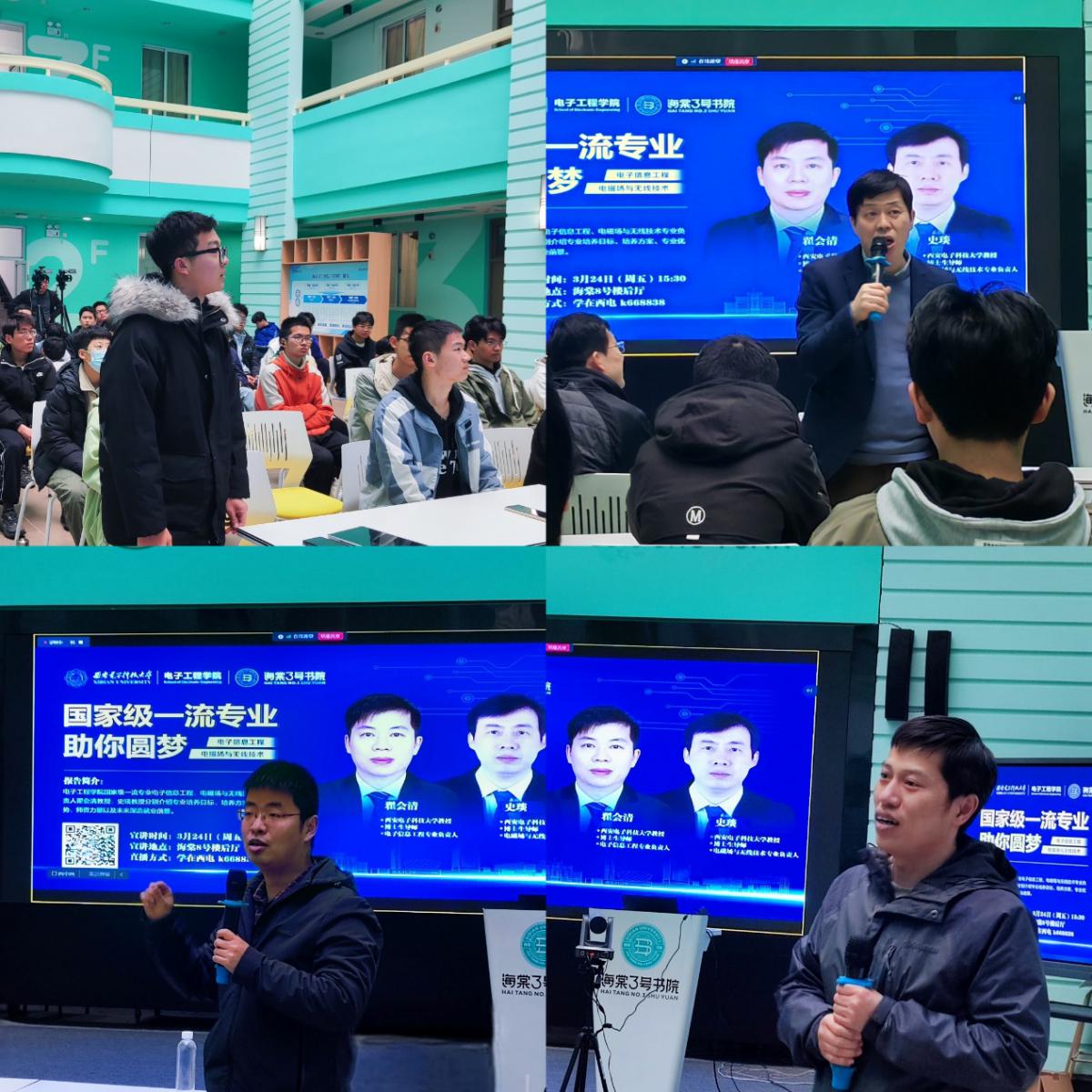 (通訊員柴佳怡 張玲 畢力格)為幫助2022級本科生了解電子信息類學科情況,明確自身發展方向,為大類分流做好充分準備,電子工程學院與海棠3號書院聯合開展學科導論系列講座。3月24日下午,電子工程學院國家級一流專業電子信息工程專業負責人翟會清教授、李林教授、劉靳副教授,國家級一流專業電磁場與無線技術專業負責人史琰教授攜手來到海棠8號樓,向同學們詳細介紹兩個專業的基本情況、研究前沿與應用方向。此次講座采取線上線下相結合的方式,獲得了同學們的一致好評。
