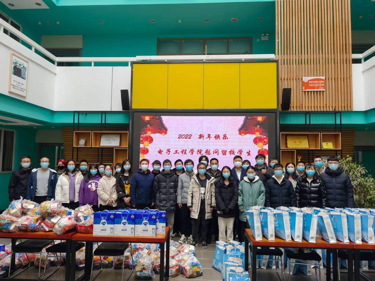 (通訊員趙彤璐)今年寒假,因疫情防控等原因,電子工程學院有近三百名學生不能如期回家,為向學生傳遞關心與關懷,豐富學生的精神文化生活,提升學生的幸福感,營造家一般溫暖的學院氛圍,1月30日,學院通過發放“新春大禮包”、師生共貼對聯等多種方式開展慰問活動。學院全體領導班子成員和輔導員同志參加活動,走進學生宿舍送溫暖。