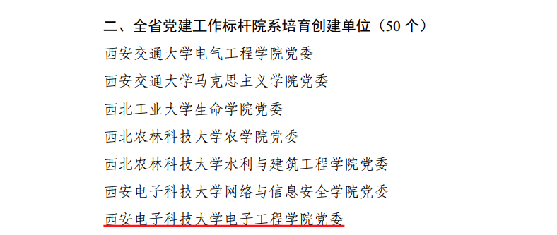 電子工程學院黨委堅持以習近平新時代中國特色社會主義思想為指引,全面貫徹黨的教育方針,堅持黨建引領、聚焦立德樹人根本任務,繼承和發揚畢德顯、保錚等老一輩電院人“立德、精業、創新、引領”的精神品質,引領全院師生扎根祖國西部,聚焦一流建設,奮力實干、攻堅克難,以高質量黨建促進學院事業高質量發展。近年來,學院先后獲“陜西省師德師風先進集體”、“陜西省高校先進基層黨委”和“陜西省模范職工小家”等榮譽稱號。