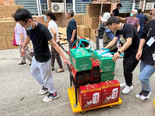 除了幫助離退休老師把福利送到家,志愿者們也積極協助離退休部門工作人員核對登記、派發物資,耐心幫助現場的申領人裝點打包。每當遇到需要幫助的老教師,同學們紛紛伸出援手,現場氣氛熱烈而融洽。