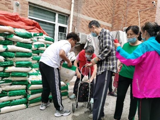 天色微蒙,突如其來的小雨絲毫沒有影響志愿者們的熱情。在現場工作人員的指揮下,同學們三兩一組,踏入雨中,把滿載節日祝福和物資的推車送到各位離退休老教師的公寓門前,受到了各位離退休教師的贊揚和感謝。