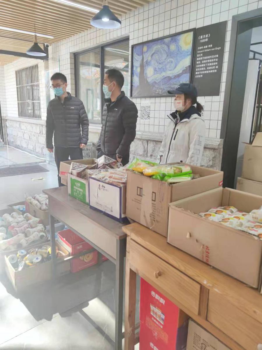 學院黨委副書記劉建鋒帶領值守同志走進教研室,了解學生近期科研學習情況。隨后,學院值守人員一起前往北校區物資臨時供應點,為學院同學采購慰問物資。