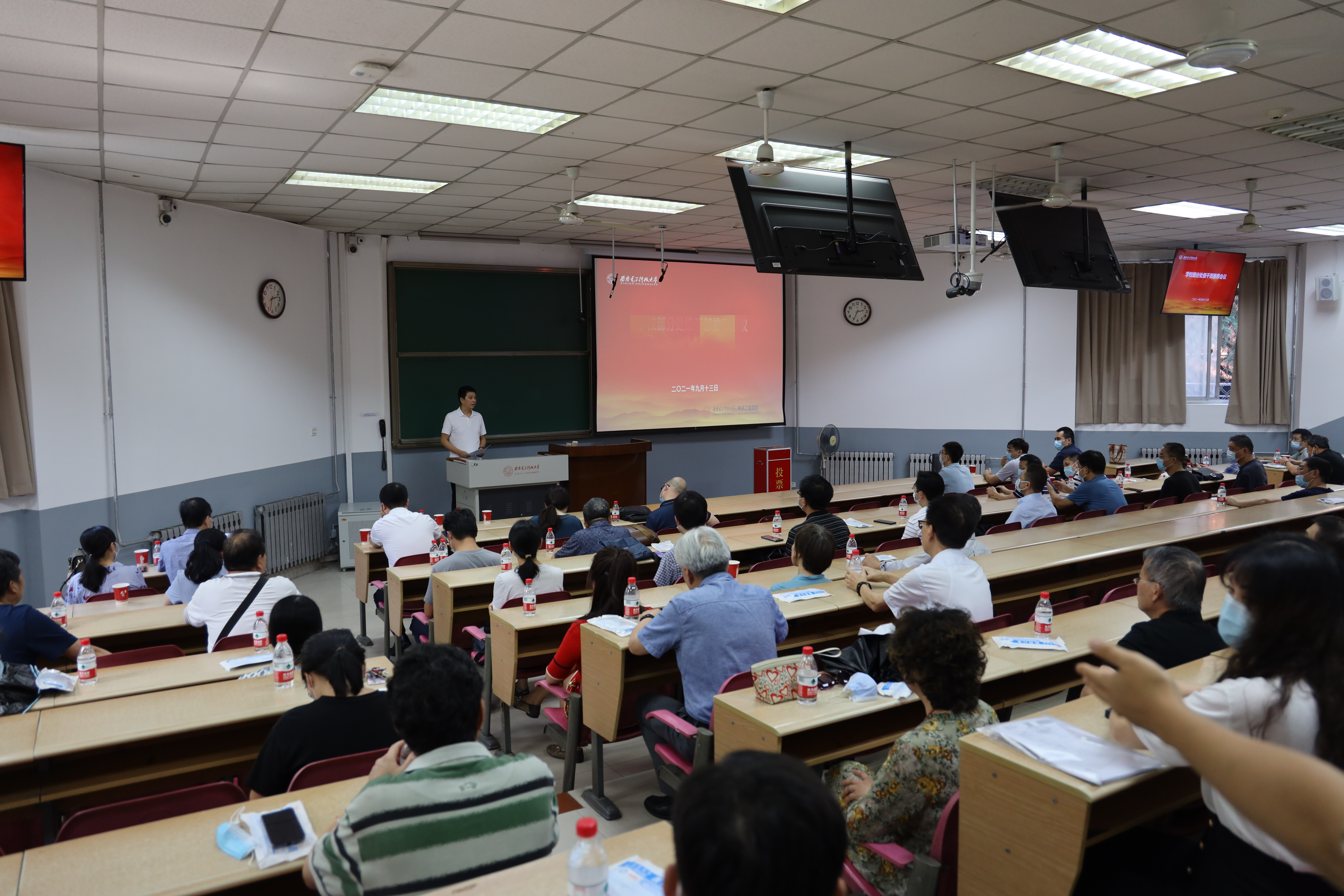(通訊員趙彤璐)9月13日下午,電子工程學院在階梯教室J110召開教師干部會議,宣布學校黨委有關決定。校黨委組織部領導和學院班子成員、兩委委員、各系所負責人、黨支部書記、科級以上干部、正高級職稱教師代表等出席會議。會議由學院黨委書記楊光暐主持。