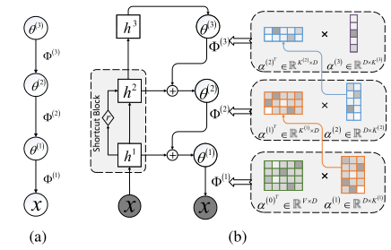 圖1:(a)伽馬信念網絡(b)本文提出的鋸齒形生成模型,以及構建起的新型變分自編碼器