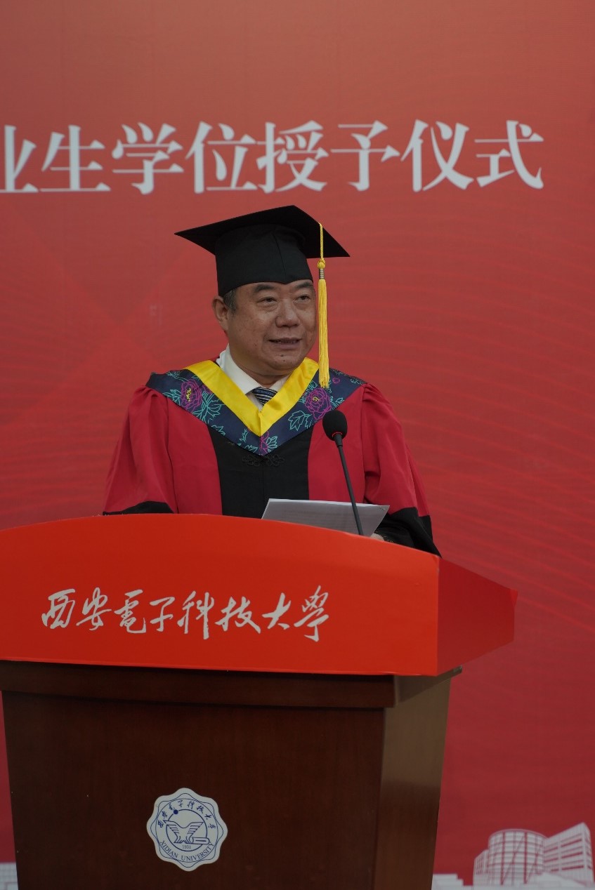 學院副院長鄧成寄語畢業生們要傳承西電為國為民的紅色基因,傳承立德精業創新引領的電院精神,要立大志、明大德、成大才、擔大任,以百年接力、強國有我的決心,以腳踏實地、追求卓越的作風,以飽滿的精神狀態奔赴新學習工作崗位。
