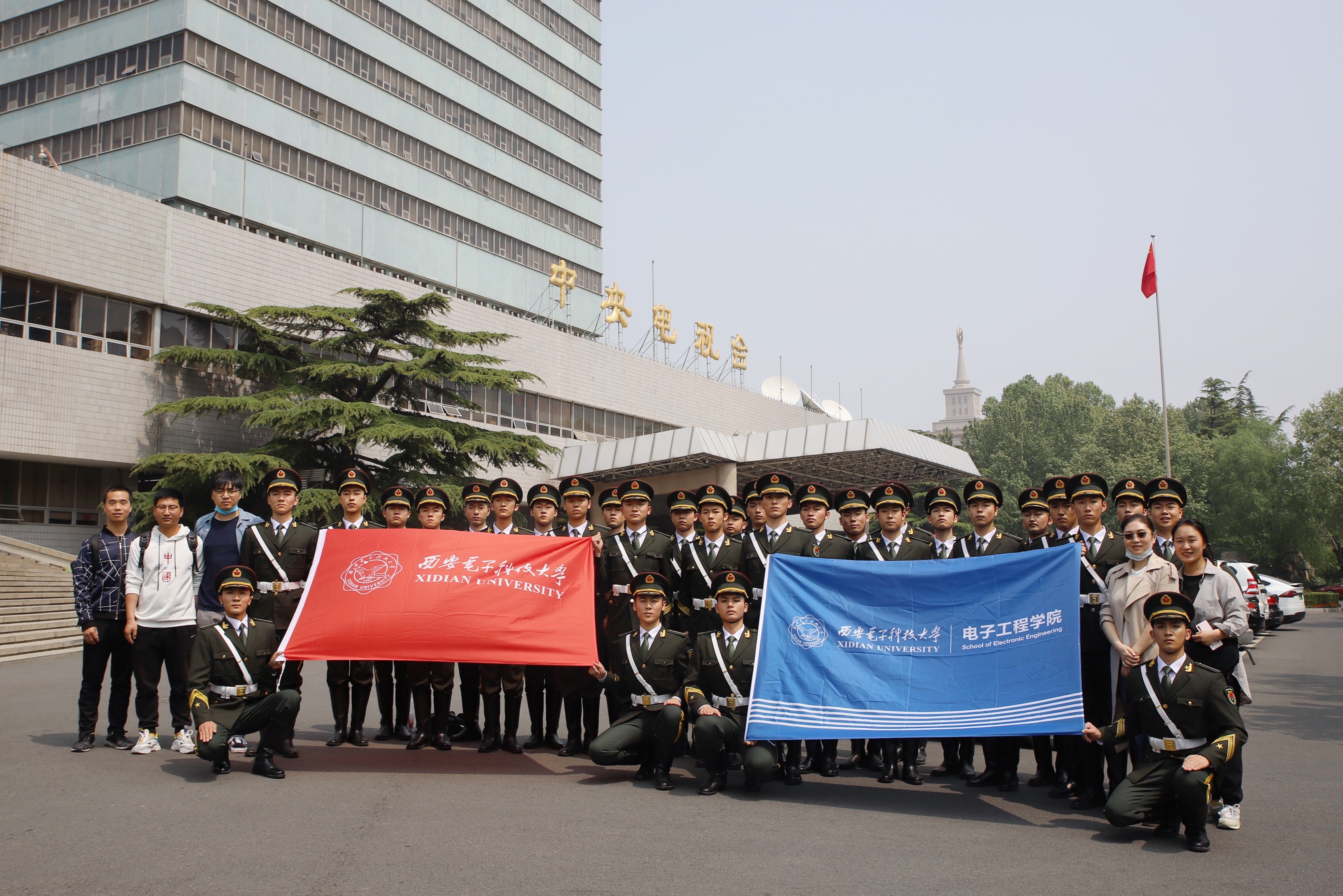 參演學生、國旗護衛隊員押世博說:從西安到北京,十多天的訓練教給我們很多很多。同學們們加緊訓練,規范自己的軍人隊列動作,只為了在節目上把最好的軍人氣概呈現給大家!作為西電er,繼承西電老前輩不怕苦不怕累的優良品質,努力排練,北京的演播廳,排練室,橋洞下都有大家的身影!當軍禮的音樂想起,一切困難都被拋在腦后,大家心里都一遍遍回想動作要領,爭取一遍成功。節目最后大家標準的軍禮獻給全國觀眾的一刻,就是向解放軍戰士、向偉大的祖國最好的致敬!