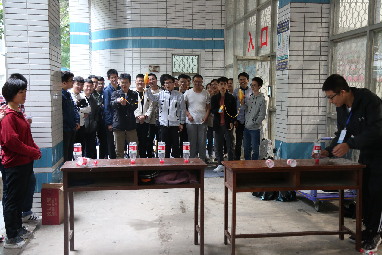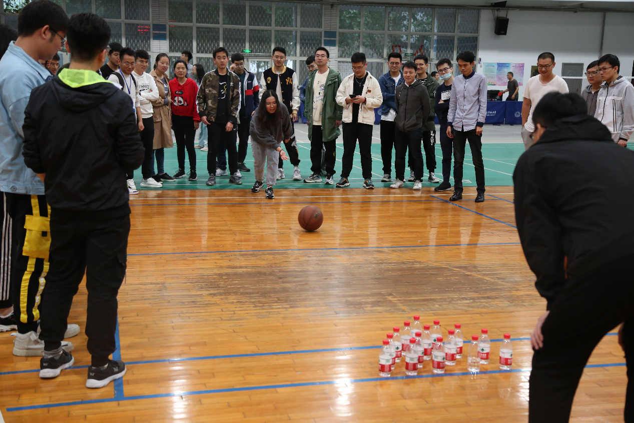 比賽在下午2點正式開始,所有參賽隊員在裁判員帶領下進行集體熱身運動,各項目裁判提前講解比賽規則,各隊員充分做好比賽準備。學院輔導員老師和參賽同學在裁判帶領下一起完成比賽,比賽中穿越體育館對角線的紙飛機、騰空而起的小袋鼠、一擊全中的保齡球紛紛贏得滿堂喝彩,全場比賽笑聲不斷。