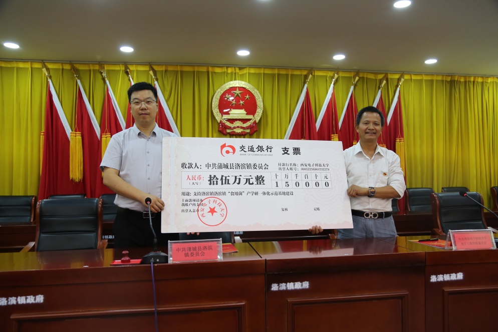 學院院長廖桂生代表學院黨委與蒲城縣洛濱鎮黨委簽署黨建幫扶結對協議。廖桂生提出,學院黨委將全力協助洛濱鎮黨委打造黨建示范基地,樹立文明鄉風,提煉“黨建引領鄉村振興,共建幸福美麗洛濱”的創建主題,幫扶建設黨建+數據分析中心、黨建+電商中心、黨建示范基地、黨員活動室等,推動產業發展,努力形成 “黨建工作有引領,奮斗目標有規劃、活動開展有陣地、脫貧攻堅有成效”的工作格局,學院黨委將結合洛濱鎮黨委需求,充分發揮學院學科專業優勢,組織科技扶貧小組對洛濱鎮“食用菌”產學研一體化示范基地持續技術幫扶。實驗中心支部、電信工程系支部與洛濱鎮蔡鄧村黨總支以主題黨日活動聯建為載體,采用組織聯建、資源共用、黨員聯育等方式,進一步為基層黨組織建設增添凝聚力和活力。