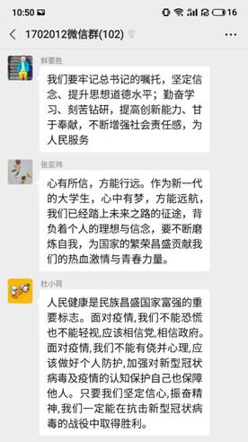 7月7日,中共中央總書記、國家主席、ZYJW主席習近平給中國石油大學(北京)克拉瑪依校區畢業生回信,肯定他們到邊疆基層工作的選擇,并對廣大高校畢業生提出殷切期望。電子工程學院2017級輔導員立即向全體學生傳達了回信精神,采用群體討論、專題視頻交流會、事跡分享等形式,組織大家一同學習了2020年習近平給高校大學生的五封回信,同學們結合自身感悟,暢談了對習總書記回信精神的理解。