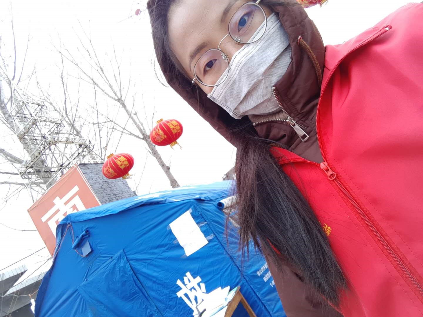 王穎萍同學在安徽省明光市澗溪鎮擔任防控勸導點志愿者