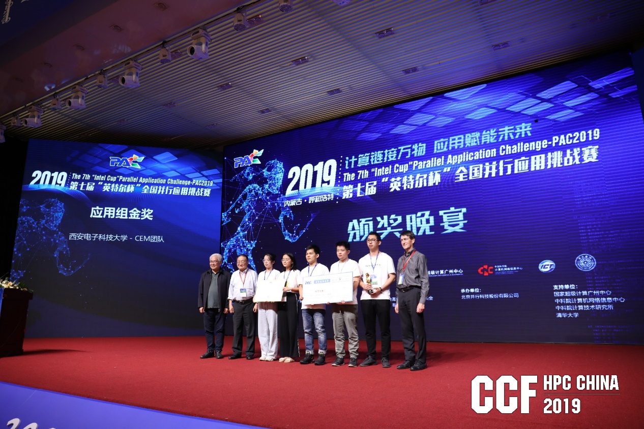 (通訊員王楠)8月23日,第七屆“英特爾”杯全國并行應用挑戰賽(簡稱PAC 2019)總決賽暨評審會于2019CCF全國高性能計算學術年會期間在內蒙古呼和浩特圓滿結束。電子工程學院林中朝老師指導,博士研究生左勝、吳昊翔等組成的西安電子科技大學CEM隊的參賽作品“大規模并行有限元電磁計算”奪得本次大賽應用組唯一金獎。至此,西安電子科技大學CEM隊自2017年首次參賽即奪冠的情況下,已連續三年獲得PAC大賽的最佳應用金獎,也是大賽自2013年創辦以來應用組唯一的三連冠參賽隊伍。