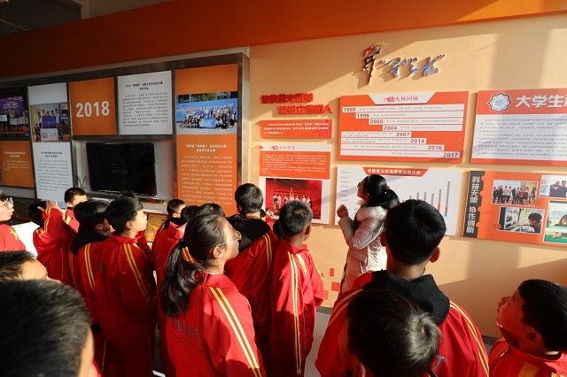 隨后,學生們參觀了學校的校史館、博物館和體育館。從“半部電臺起家”到“長征路上辦學”,再到如今在電子信息領域享譽全國,通過一幅幅珍貴的老照片和一段段生動形象的故事,西電的建校傳奇浮現在大家眼前,同學們也自覺地圍在一起,認真聆聽、發表感想,他們對西電的光輝歷史和蓬勃發展有了更深刻的了解。