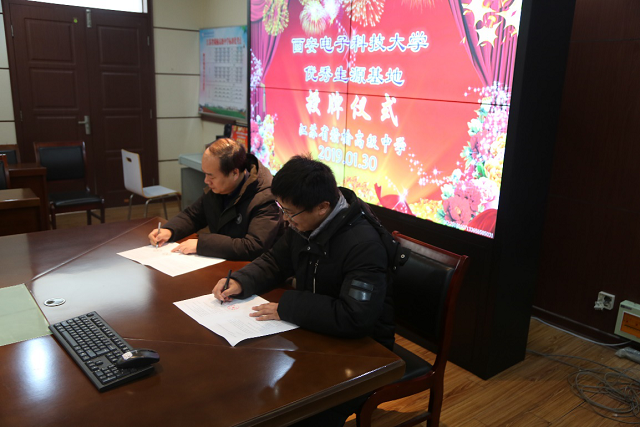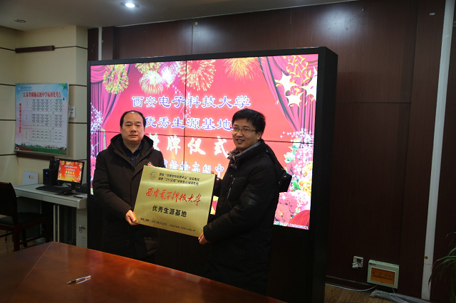 招生宣傳小組與相關校領導進行了溝通和會談,就我校生源地基地建設的目標、形式等方面與江蘇贛榆高級中學達成了合作意向,順利簽訂了“西安電子科技大學優秀生源基地”協議書,會談雙方舉行了授牌儀式。