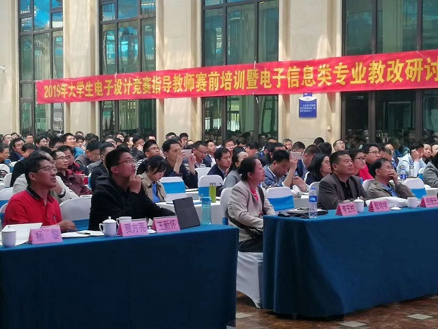 2019年4月12日至15日,“2019年大學生電子設計競賽指導教師賽前培訓暨電子信息類專業課程改革與創新研討會”在安徽合肥隆重舉行,會議由全國大學生電子設計競賽專家組副組長傅豐林教授主持,全國大學生電子設計競賽組委會秘書長羅新民教授、全國電賽命題責任專家華南理工大學殷瑞祥教授、同濟大學岳繼光教授、北京大學王志軍教授、浙江大學潘再平教授、天津大學劉開華教授、電子科技大學李玉柏教授、西安電子科技大學陳南教授、全國電賽校聘教練專家組長王新懷等老師做了大會報告,此外還有來自各高等院校電子設計競賽工作負責人和電子設計競賽指導教師共2000余人參加了此次重要研討會。