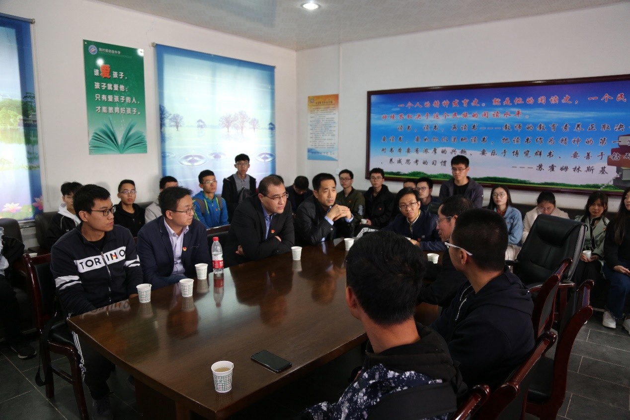 座談會上,翔村中學校長王聞格對電院師生的到來表示熱烈歡迎,感謝學院對翔村中學的幫助和對貧困學生的關懷。他詳細介紹了學校近年發展情況和貧困學生的致貧原因。他表示,翔村中學是一所現代化的九年制農村寄宿學校,生源覆蓋周邊16個貧困村,目前在校學生894人,其中建檔貧困生111人。