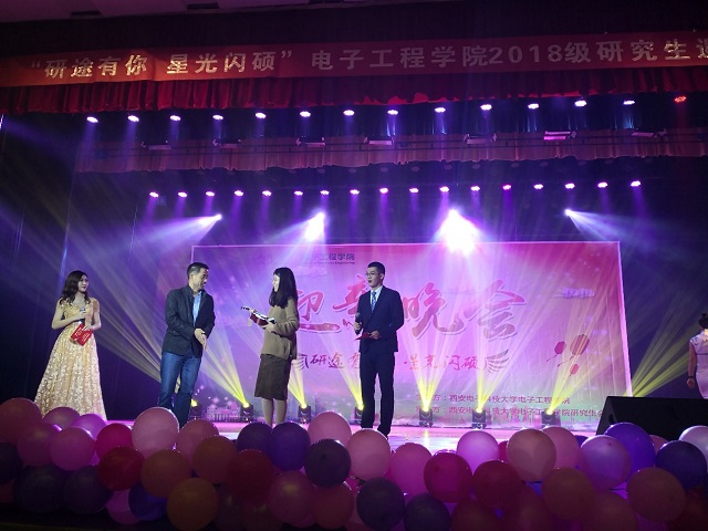 (通訊員:宋朗、李其)2018年10月31日晚,由西安電子科技大學電子工程學院主辦,電子工程學院研究生會承辦的“研途有你·星光閃碩”2018級研究生迎新晚會在北校區文化活動中心圓滿落幕。電子工程學院黨委副書記劉建鋒,副院長孔東蒞臨現場,研究生輔導員鄧鑒老師、各院研會和俱樂部的學生干部以及千余名新生出席并觀看了整場晚會。