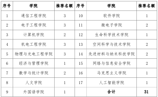 (二)學院推薦。各學院負責對本單位申報人進行評議、遴選,并限額推薦。根據各學院實際情況,推薦名額如下: