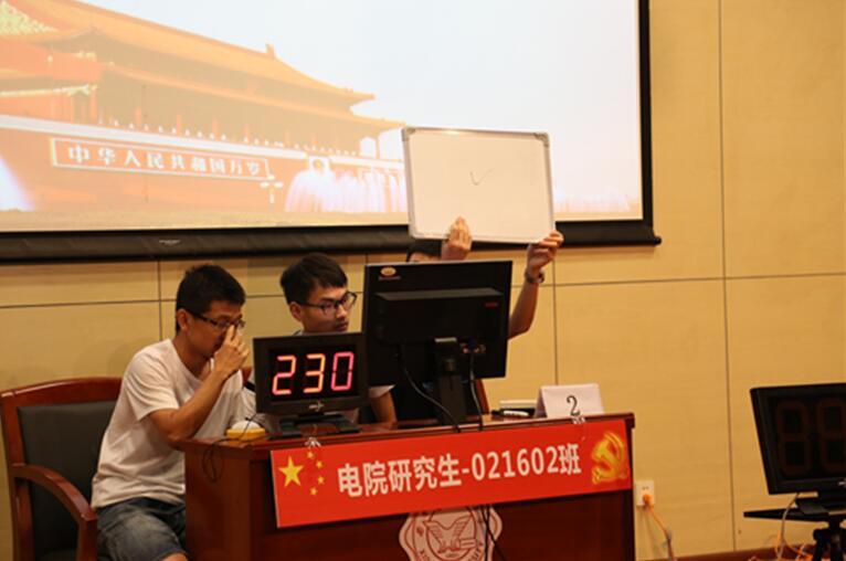 第一輪的前三支隊伍為電院本科1602011班,1602052班,電院研究生021602班。比賽開始,題目主要為中國近代史,各隊沉穩答題,正確率非常高。比賽進入中段后開始出現了分差,1602011班和021602班比分咬的很緊,1602052班在手速上略遜對手。同時三隊都開始出現搶答犯規,氣氛逐漸緊張。但主持人妙語連珠,劉縉教授細心科普,觀眾目不轉睛。最后第一輪前半段比賽完美結束。