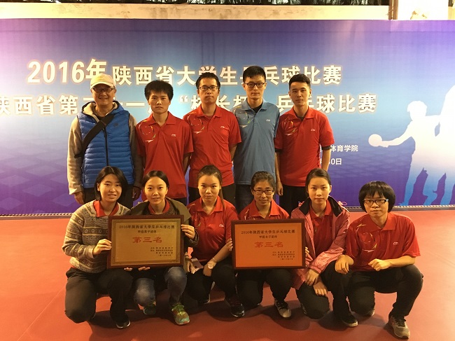 西電派出了五名男子、六名女子大學生參加了甲組(普通大學生組)的比賽,由嚴鳴副教授任教練。今年陜西省大學生乒乓球比賽的團體賽制調整為五人對抗賽,賽制要求每名選手最多只能報名包括團體賽在內的2個項目,在如此嚴苛的限制條件下,西電參賽選手經過激烈的角逐,奮力拿下男子男子單打冠軍、團體第三名、女子團體第三名和女子雙打第五名的優異成績。