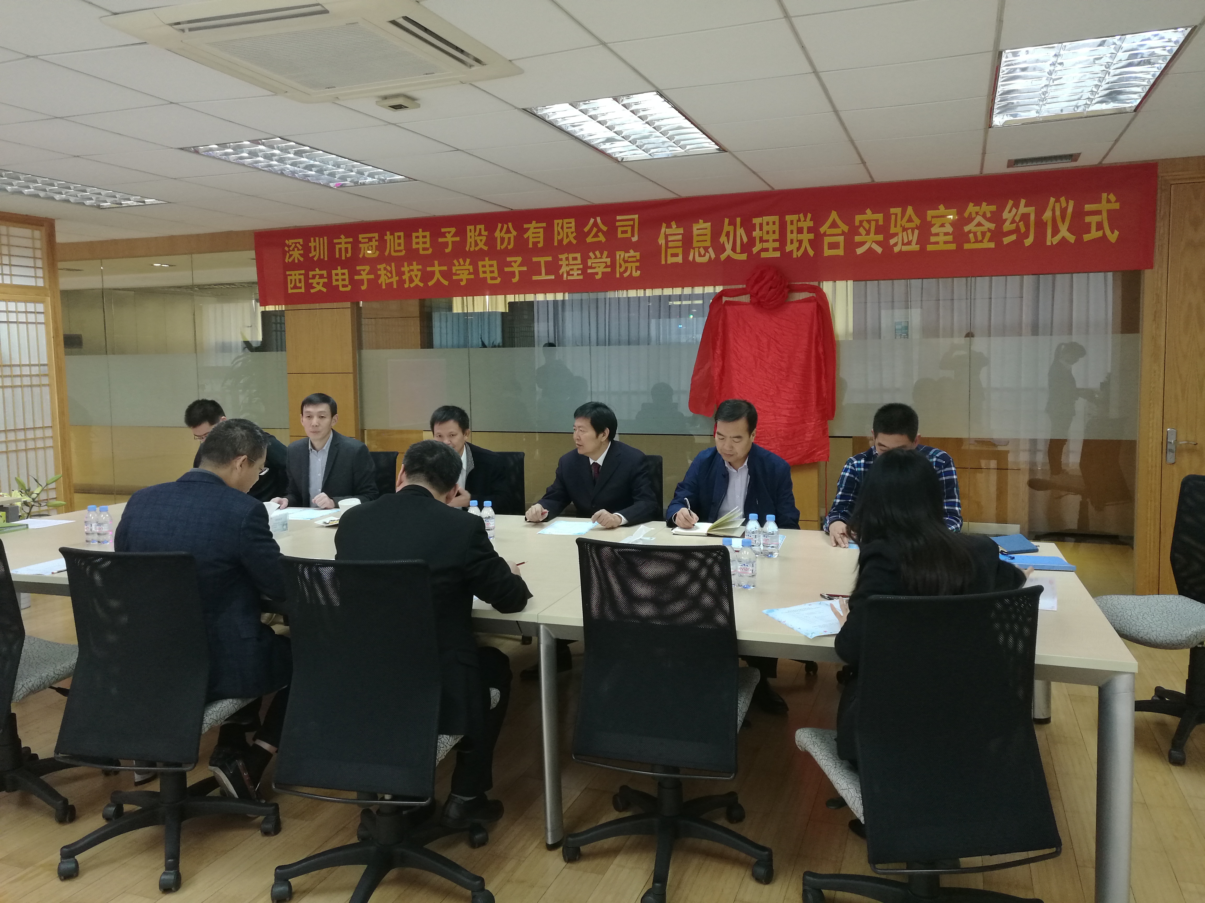 (通訊員:鄧鑒)11月30日上午,在深圳市冠旭電子股份有限公司舉行了西安電子科技大學電子工程學院與深圳市冠旭電子股份有限公司“信息處理聯合實驗室”、“大學生創新創業實習基地”簽約暨掛牌儀式。深圳市冠旭電子股份有限公司吳海全董事長、耿錫年項目總監、張恩勤研發總監,電子工程學院廖桂生院長、徐克書記、張海戰副書記、那彥教授、任愛鋒副教授、侯彥賓老師等人出席了簽約掛牌儀式。