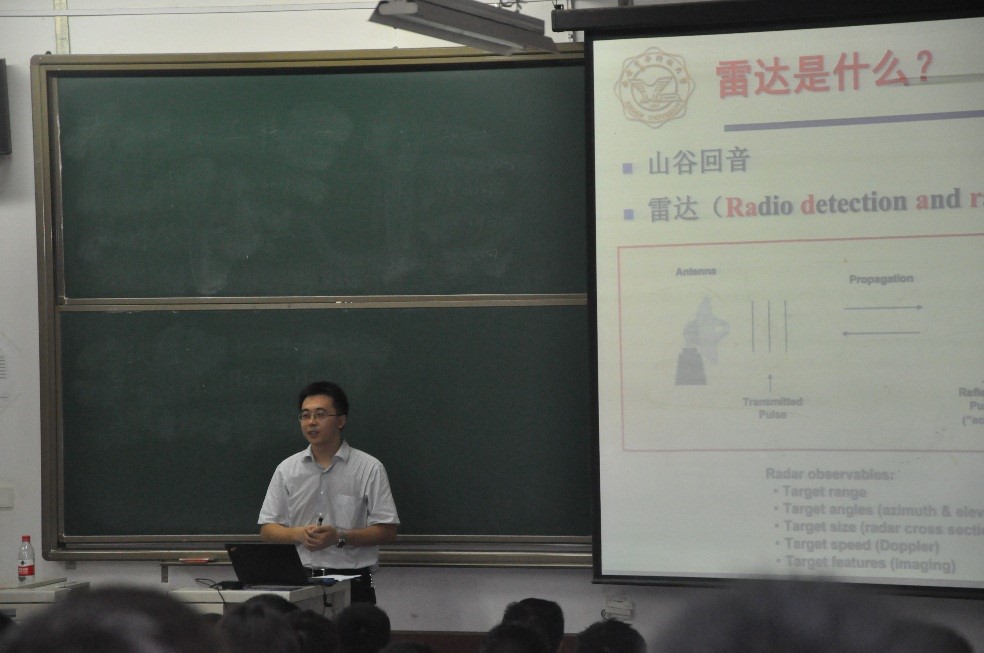 隨后,楊明磊老師介紹了雷達工程創新實驗室的成立背景、承擔的主要內容、課題設置及管理流程等。他指出創新實驗室主要資助雷達工程相關的創新實驗課題,題目由老師建議或者學生自由申報,并由實驗室具有豐富科研經驗的老師作為專門帶隊教練進行輔導,是難得的學習和鍛煉機會。