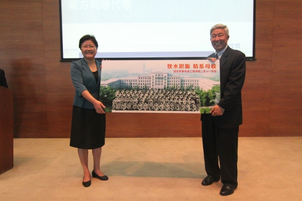 “看到各位學長、學姐相隔半個世紀的重逢,我內心非常的感動”,鄭曉靜親切的對2-611甲班校友重逢表示祝賀,被同學之間友誼,師生之間情誼,校友與母校間情懷的真摯所打動。她講到,今天大家相聚在這里,共敘友誼,感恩師長,不忘西電情意。大家在關心支持學校的同時,母校也永遠不會忘記大家,你們在事業上的成就也是學校的榮耀!是以你們為代表的廣大西電校友在祖國各行各業中的卓越貢獻,傳播了母校的聲譽,提升了母校的影響力。“曾經的主樓還在,食堂飯菜依然可口,操場依然熱鬧。但學校已發生了巨大的變化,取得了可喜的成績,愿大家保重身體,家庭美滿。學校的大門永遠向各位校友敞開著,歡迎大家常回家看看!我們相約母校見!”