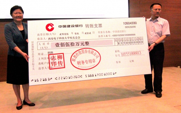 活動期間,鄭曉靜與柳傳志夫婦進行了親切會談。鄭曉靜講到,西電近幾年在科研、學科、人才等各項指標上均有大幅提升,特別是信息感知技術協同創新中心以行業產業第一、全國第二的成績被認定為國家“2011協同創新中心”更是振奮人心,這是西電長期沉淀積累的爆發,全體師生卯足了勁,要在學校發展中不斷創新,尋求突破。也希望能夠與校友、校友企業開展深入的合作。柳傳志愉快地回憶起當年上學的情景,永遠難忘的師生間情誼,他說母校在我們每個人的成長歷程中是永遠的精神家園,在身上烙下的誠信、擔當、責任的西軍電印記影響著學生一生,這也是聯想在發展企業文化中不斷貫徹的精神,非常希望母校越來越好,也非常愿意為母校的發展盡自己的一份力量。為支持母校發展,在柳傳志的倡導下,聯想控股股份有限公司向學校捐贈150萬用于支持學校校友工作。