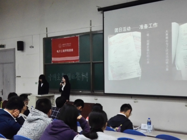 團日答辯正式開始,主持人介紹各位領導及評委并介紹答辯規則。校團委組織部部長關鍵、電院團委書記助理薛潤東、校團委組織部副部長張小雪、電院團委組織部副部長王俊杰、電院學生會組織部部長楊松岳、電院團委組織部負責人王正帥、電院團委組織部負責人胡珂萌、電院團委實踐部負責人林佳曼、電院優秀團支書彭杰擔任本次答辯的評委,校團委組織部副部長賈美霞、通院團委組織部部長胡博深以及通院的團支書們作為嘉賓觀看了本次答辯。