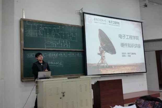 此次活動邀請到了硬件方面頗有建樹的方凌學長。方凌曾在全國大學生電子設計大賽中獲得全國第一名,在TI杯中獲得陜西省最高獎。方凌給大家做了耐心細致的講解。