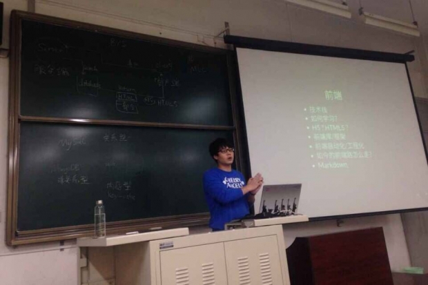 首先,趙學兵對網絡前端和后端的開發進行了簡單的介紹,讓大家對于網絡方面的相關知識有了初步的了解。接下來趙學兵講解了微信平臺開發的基本知識,從大家日常使用的微信入手講解,來提高同學們學習網絡知識的興趣。后來趙學兵對于JavaScript 的現狀與未來進行了簡單的分析,給大家進一步深入的學習指名了方向。最后,趙學兵告訴到場的全體同學,學習網絡的道路不可能是一帆風順的,堅持、不放棄,每個人都能獲得成功。