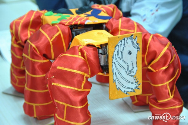學生做的舞蹈機器人“白龍馬”,還可以變形成《西游記》里面的四個主人翁