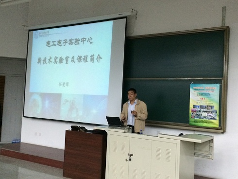 2014年9月15日晚,大雨,可是在新校區D樓206教室,能容納約500余人的教室座無虛席,過道也站滿了學生。我校國家級電工電子實驗中心在這里舉辦電子信息類新技術實驗課程及創新設計講座,電工電子實驗中心第一次舉辦這樣的講座,沒有預見到學生的熱情這么高,連給與會的老師預留的座位也被學生搶占,新技術實驗課程的很多老師都站在了走廊上。
