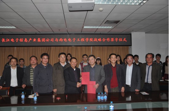 長江電子信息產業集團公司與電子工程學院戰略合作舉行協議簽字儀式 2014-04-08 11:36:00 瀏覽次數: 4月1日,長江電子信息產業集團公司與西安電子科技大學電子工程學院戰略合作簽字儀式在西安電子科技大學隆重舉行,長江電子信息產業集團公司總經理陳寬義、西安電子科技大學電子工程學院院長廖桂生、雷達信號處理國家級重點實驗室主任劉宏偉、天線與微波技術國家級重點實驗室主任龔書喜、西安電子科技大學電子工程學院副院長黃平寧、雷達信號處理國家級重點實驗室副主任張林讓、天線與微波技術國家級重點實驗室副主任傅光等出席簽字儀式。劉宏偉、龔書喜、陳寬義、廖桂生分別致辭,黃平寧主持簽字儀式,陳寬義和廖桂生在協議書上簽字。 廖桂生院長和陳寬義總經理在協議書上簽字 全體與會人員合影 上一篇文章:電子工程學院舉辦2014屆研究生畢業典禮暨學位授予儀式 下一篇文章:西電南校區學生宿舍安裝空調的有關信息-申請表下載