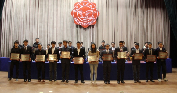 會議舉行了頒獎儀式,蔣舜浩宣讀了2012—2013學年總評授獎決定。物理與光電工程學院、通信工程學院、經濟與管理學院、計算機學院、機電工程學院以及微電子學院等6個單位獲得“學生工作先進單位”稱號,崔康等21名輔導員獲得“優秀輔導員”稱號,徐璐瑤等1094名同學獲得“優秀學生標兵”、“校級優秀學生”、“校級優秀學生干部”等先進個人稱號,011100班等94個班集體榮獲“先進班集體”、“優良學風班”稱號,共計5137名同學獲得校級獎學金。通信工程學院王思濃同學代表獲獎學生做了發言。